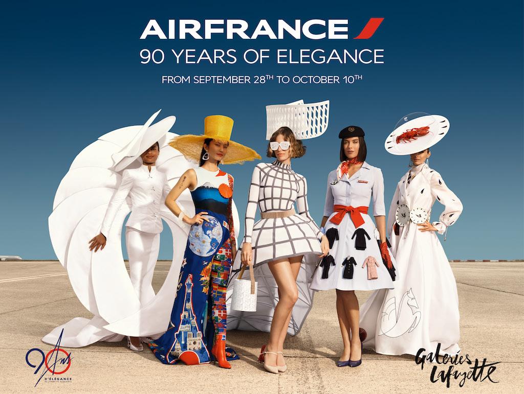 Durante questo periodo di anniversario, Air France offre ai visitatori la possibilità di assistere a vere e proprie sfilate di moda che ripercorrono 90 anni di eleganza francese, insieme alle Galeries Lafayette. I modelli vestiti con le uniformi dei piloti, dell'equipaggio di cabina, del personale aeroportuale e dei meccanici saranno esposti in un'area dedicata del negozio per ripercorrere il leggendario patrimonio delle uniformi dell'azienda. Dai primissimi outfit "barman" ai pezzi couture firmati dai più grandi stilisti come Christian Dior, Cristóbal Balenciaga e Christian Lacroix, la sfilata è un viaggio unico negli stili delle diverse epoche storiche di Air France.